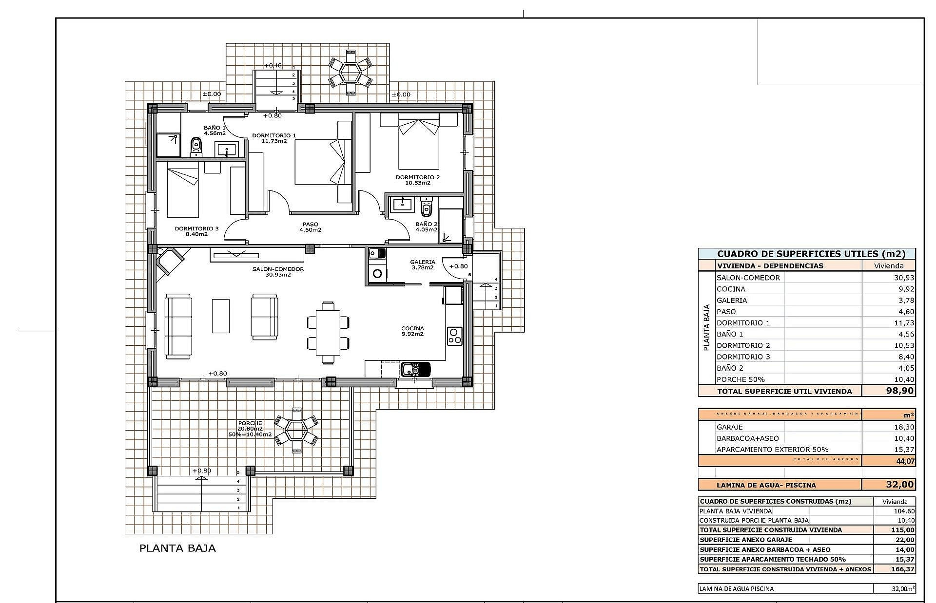 Het afgebeelde model is een villa van 120 m² met een privézwembad van 8 × 4 meter.