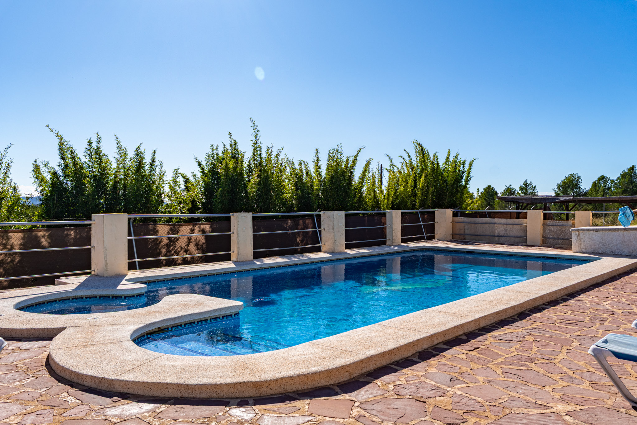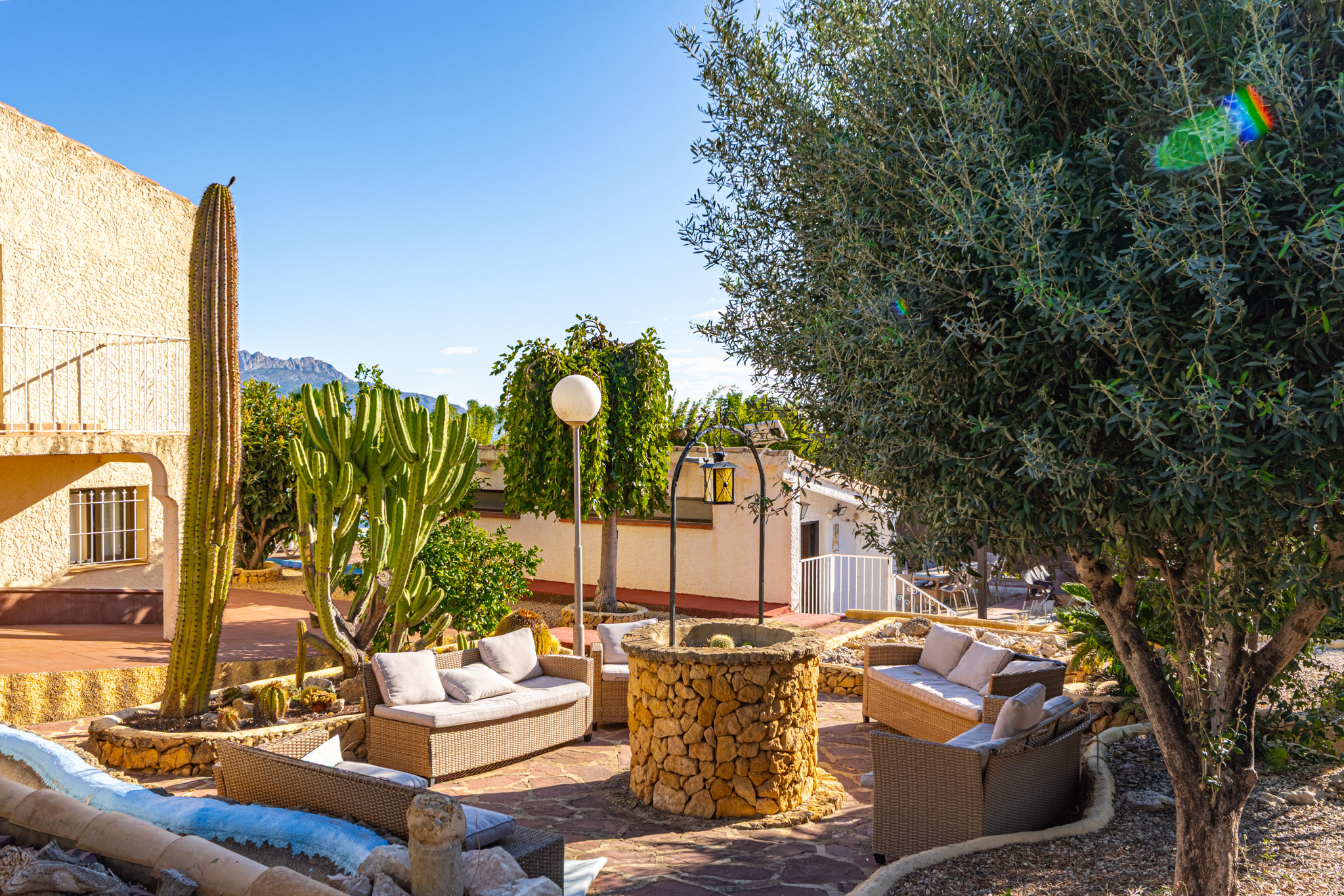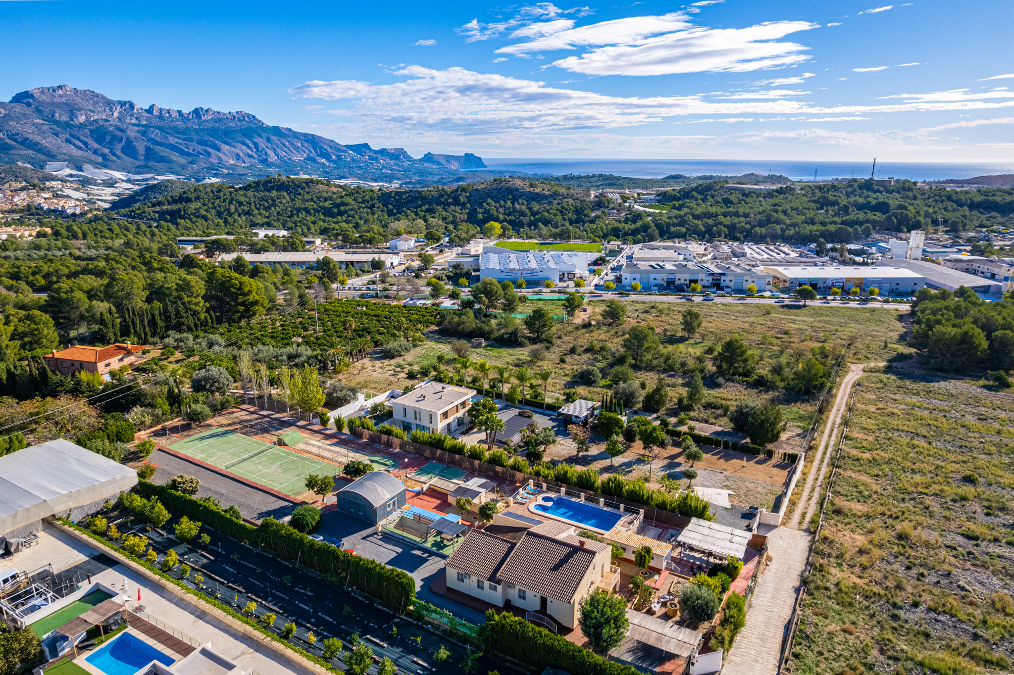 De buitenruimtes zijn een van de grootste hoogtepunten van de eigendom. De gronden beschikken over een privézwembad, tennisbaan, badmintonbaan, pétanquegebied, skate ramp en een jacuzzi. Er is ook een barbecuegebied, fruitbomen door de tuin en meerdere chillout zones voor ontspanning. Voor vermaak biedt de eigendom tafelvoetbal, mini biljart en pingpongruimtes, wat een leuke en resortachtige sfeer creëert. Dankzij de zuidoostelijke oriëntatie geniet de villa de hele dag door zonlicht.