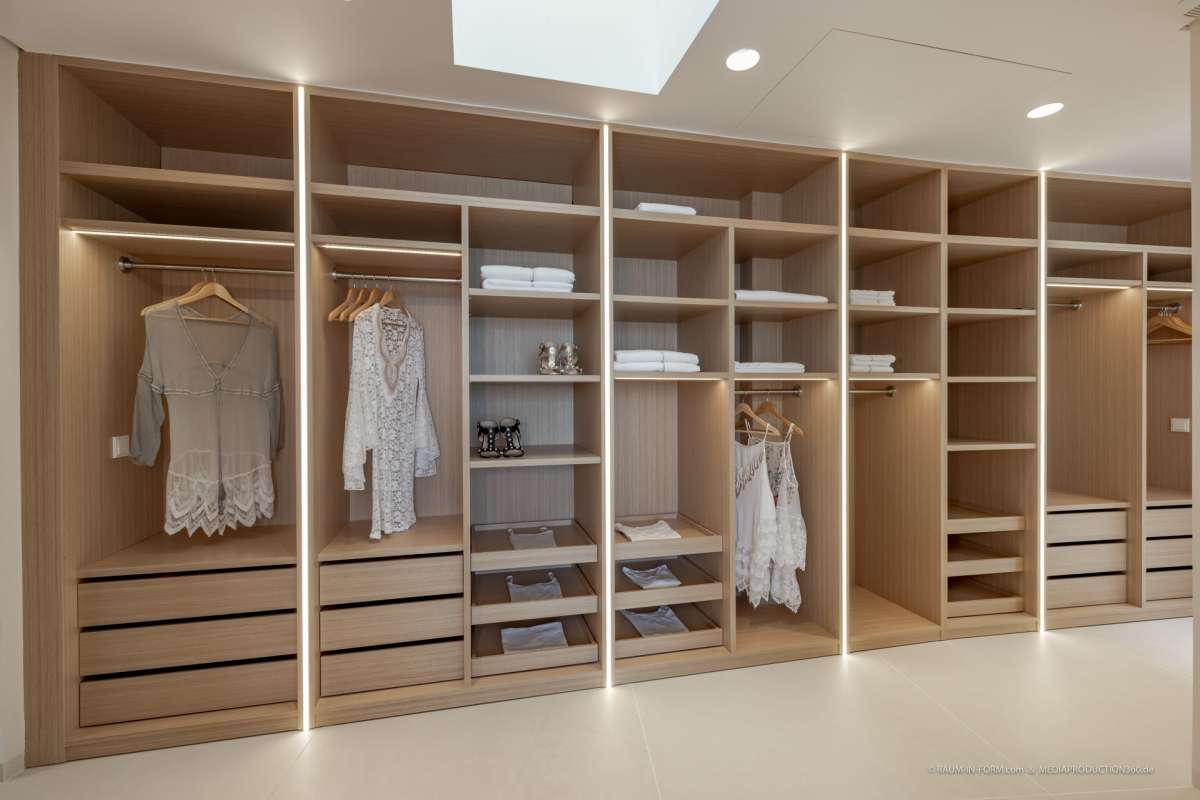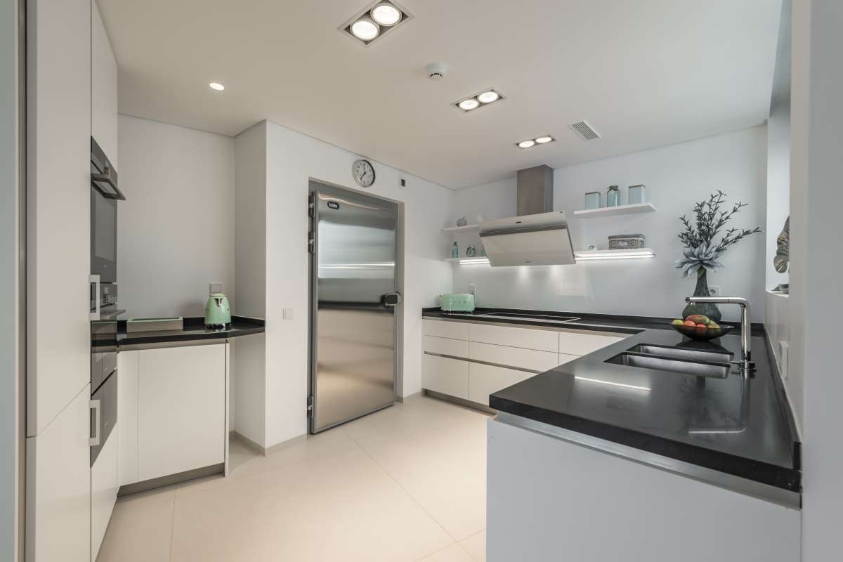 Binnen straalt de villa modern design en verfijning uit. Grote, drievoudig beglaasde schuifdeuren verbinden de lichte woonruimte met open haard naadloos met de terrassen en tuin. De strakke designkeuken is uitgerust met Miele-apparatuur, een inloopkoelkast en een osmosesysteem, terwijl vloerverwarming en een uitgebreid domotica-systeem zorgen voor optimaal comfort in elk seizoen.