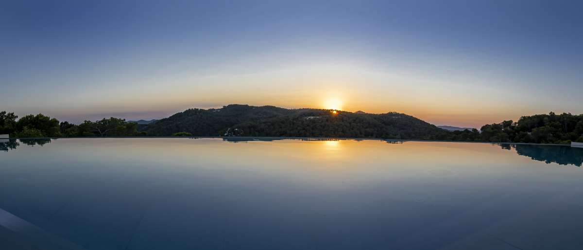 De villa geniet van een adembenemend uitzicht over de zee en de omliggende bergen, met indrukwekkende zonsondergangen en volledige privacy. Ondanks de serene ligging bevinden Ibiza-stad, de jachthavens en de luchthaven zich op slechts enkele minuten rijden.