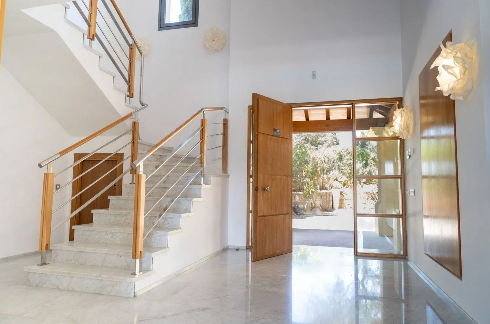 Het interieur van de villa valt op door de grote hal met dubbele hoogte die de ruimtes vult met natuurlijk licht dankzij de zuidoostelijke oriëntatie. Het heeft airconditioning, vloerverwarming en pre-installatie voor high-end systemen. De keuken is volledig gerenoveerd en geïntegreerd met een open eethoek met uitzicht op het zwembad. Het huis heeft vijf slaapkamers: drie boven (twee en suite) en twee beneden, plus een toegankelijke wasruimte, wijnkelder en opslagruimtes. Het interieurontwerp combineert comfort, functionaliteit en elegantie, met panoramisch uitzicht vanuit de woonkamer op de tuin en het bos.