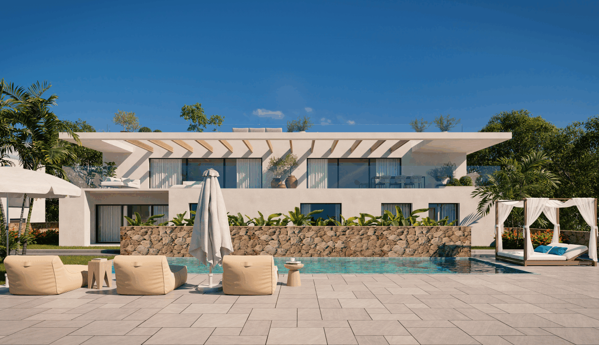 De omgevingDeze prachtige luxe nieuwbouw villa's met privézwembad en weelderige tuin liggen in een rustige woonwijk naast Jesús en Talamanca. Het project bestaat uit vier villa's, ontworpen door een gerenommeerde architect uit Ibiza. De vier vrijstaande huizen liggen op een gemeenschappelijk perceel en vormen een klein privé wooncomplex. Er is een 24/7 bewakingsdienst gepland bij de ingang van het pand om de bewoners maximale veiligheid te bieden. Strandliefhebbers zullen hun hart ophalen met de prachtige zandstranden van Talamanca en de idyllische baai van S’Estanyol, die zich op slechts een paar minuten rijden bevinden. Het beroemde Marina Botafoch is ook binnen 5 minuten te bereiken en is de thuishaven van 's werelds meest luxueuze jachten en biedt de perfecte omgeving voor wandelingen langs de promenade. Hier vindt u enkele van de beste restaurants en nachtclubs van het eiland. Een korte rit van 5 minuten brengt u naar Jesús, een charmant stadje dat alle dagelijkse voorzieningen biedt, zoals restaurants, supermarkten, een postkantoor, apotheek en meer. Dankzij deze gewilde locatie zijn alle bezienswaardige punten aan de oostkust van het eiland gemakkelijk te bereiken. Ibiza-stad ligt slechts op 7 minuten rijden en de luchthaven op maar 12 minuten. Alle dagelijkse levensbenodigdheden zijn makkelijk te bereiken, terwijl u geniet van de rust en privacy van uw exclusieve en luxueuze toevluchtsoord.De villa’sDeze moderne villa in Ibiza-stijl heeft 4 slaapkamers en 4 badkamers verdeeld over een perceel van 812m2, met een geplande bebouwde oppervlakte van 545m2. De buiten architectuur combineert wit stucwerk met houten elementen, wat zorgt voor een moderne uitstraling met behoud van mediterrane elegantie. U komt de woning binnen in een ruime, open woon- en eetkamer met een moderne en volledig uitgeruste keuken. Opmerkelijk zijn de indrukwekkende kamerhoogtes van 3,75 en 3,85 meter, die een gevoel van overvloed en luxe geven. De slaapkamers zijn volgens de planning allen gelijkvloers, op de begane grond of op de eerste verdieping, afhankelijk van het type villa. Alle slaapkamers hebben en-suite badkamers met moderne douches en de master suites zijn extra uitgerust met luxe baden. Verder heeft elke woning een eigen kelder, een prachtig dakterras met 360 graden uitzicht en diverse terrassen. De buitenruimtes bieden het perfecte podium voor allerlei sociale bijeenkomsten, van al-fresco dineren of barbecueën, tot een elegante cocktail soiree op het dak onder een sterrenhemel. De woningen beschikken over een groot aantal handige voorzieningen, zoals vloerverwarming, water en elektriciteit via het openbare net, aansluiting op de openbare riolering, glasvezel internet, een geavanceerd domoticasysteem en een eersteklas alarmsysteem. Bovendien is er een energiecertificaat van klasse A+ in het vooruitzicht dat aan de hoogste energienormen voldoet, en voor lagere huishoudelijke kosten zorgt. De oplevering van de villa's is gepland voor eind 2024 of begin 2025, tot dan heeft u de unieke kans om de afwerking en het interieur naar uw persoonlijke voorkeur vorm te geven.De buitenruimtesHet exclusieve wooncomplex wordt omgeven door weelderig groen en scheidt de individuele percelen met tropische planten en bomen. Alle villa's zijn zuidelijk gericht, wat de luxe biedt van een maximum aan zonuren per dag. De woningen beschikken allen over een eigen tuin, privé zwembad en zonneterras, waar u op zomerse dagen extra van kunt profiteren. Geniet van het adembenemende uitzicht vanaf de terrassen op de bovenverdieping. Kijk uit over het prachtige Ibiza-Stad, de luxe jachthaven en de glinsterende Middellandse Zee. U bereikt deze exclusieve villa's via een privé oprijlaan, waar u langs de beveiliging naar binnen rijdt. Om het comfort en de veiligheid van uw voertuigen te garanderen, heeft elke villa een privé garage. Deze prachtige villa op een toplocatie is perfect om het hele jaar door te bewonen. Bovendien biedt het de mogelijkheid om het object af te werken volgens uw eigen wensen en behoeften, om zo uw ultieme Ibiza droomhuis waar te maken.