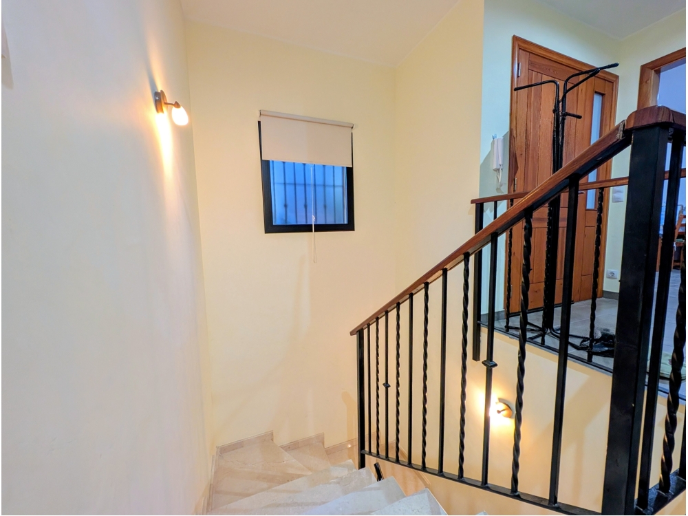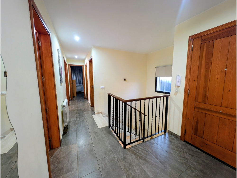 Het huis is verdeeld over twee verdiepingen, verbonden via een interne trap. Op de begane grond vind je een ruime en lichte woon-/eetkamer met panoramisch uitzicht op de bergen, een grote volledig uitgeruste aparte keuken, vier comfortabele slaapkamers en twee moderne badkamers.