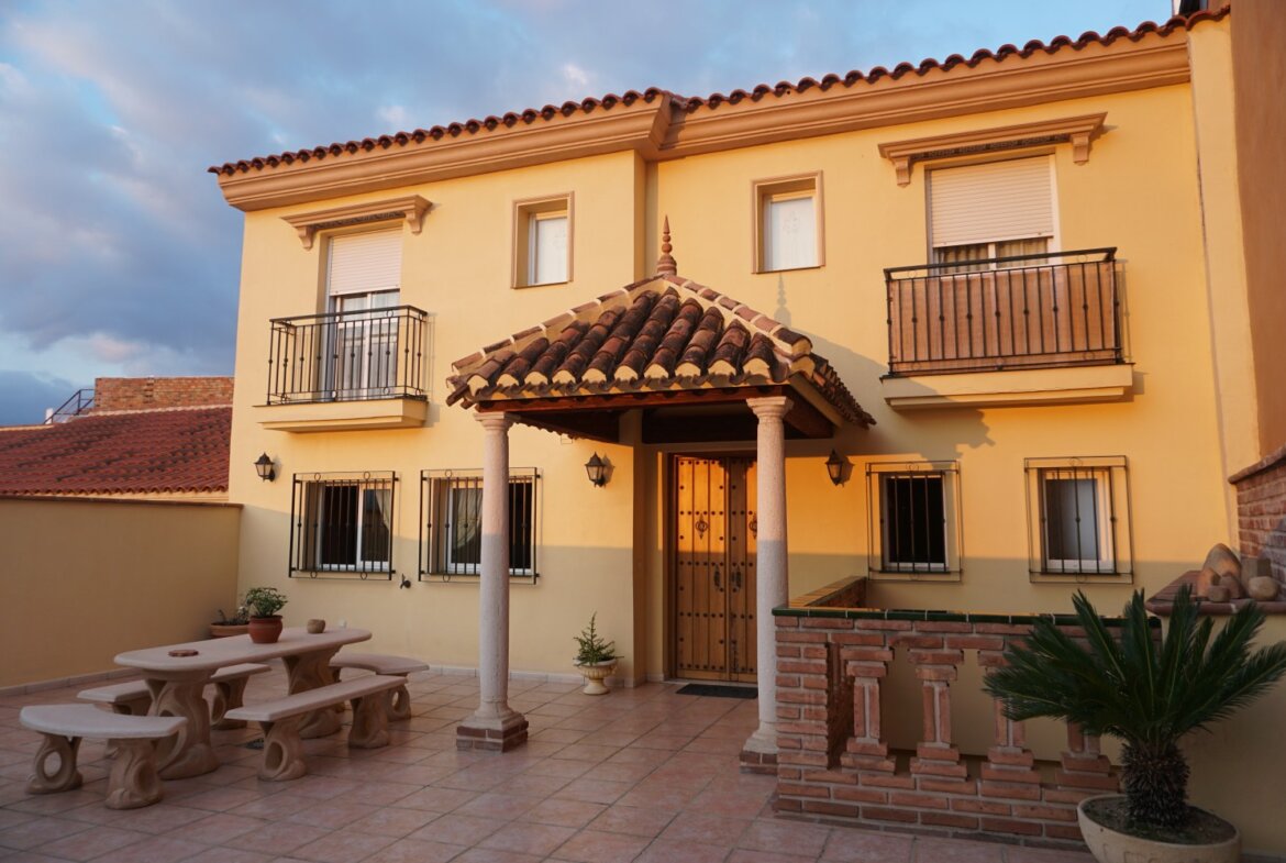 Dit is een ruime villa in Velez Malaga. Het is slechts 250m van het gerechtsgebouw, het is dicht bij winkels, restaurants, apotheken, scholen... U kunt alles te voet bereiken. Het huis is verdeeld in 4 verdiepingen. Bij de ingang van het huis vinden we een grote buitenpatio. Als we het huis binnenkomen vinden we een grote keuken met eetkamer aan de rechterkant. De keuken is volledig uitgerust. Het geniet van veel natuurlijk licht. Op deze zelfde verdieping vinden we een toilet. Vanaf deze verdieping hebben we ook toegang tot het privé zwembad dat een grote patio heeft waar u kunt genieten van de zon of een lekkere barbecue in de zomer. Ook op deze verdieping is er een wasruimte. Boven vinden we de slaapkamers. Er zijn 2 slaapkamers, elk met een ingebouwde kast. Er is een ruime badkamer, met een groot ligbad en twee wastafels. Tenslotte vinden we op deze verdieping de "Master" slaapkamer. Op de begane grond is er een grote woonkamer, met een open haard. Op deze verdieping is er ook een badkamer en een kleine buitenpatio. Daarnaast zijn er 2 slaapkamers, die momenteel worden gebruikt als kantoor en een kleedkamer. Als we naar de bovenverdieping gaan, vinden we de garage en de opslagruimte. Het heeft ook een klein toilet. Het heeft ook een wijnkelder en een kleine bar. We zijn blij dat we dit droomhuis binnenkort aan u kunnen presenteren, hetzij persoonlijk, hetzij via een virtuele bezichtiging. - net als onze Axarquía. In Andalusië. . ...